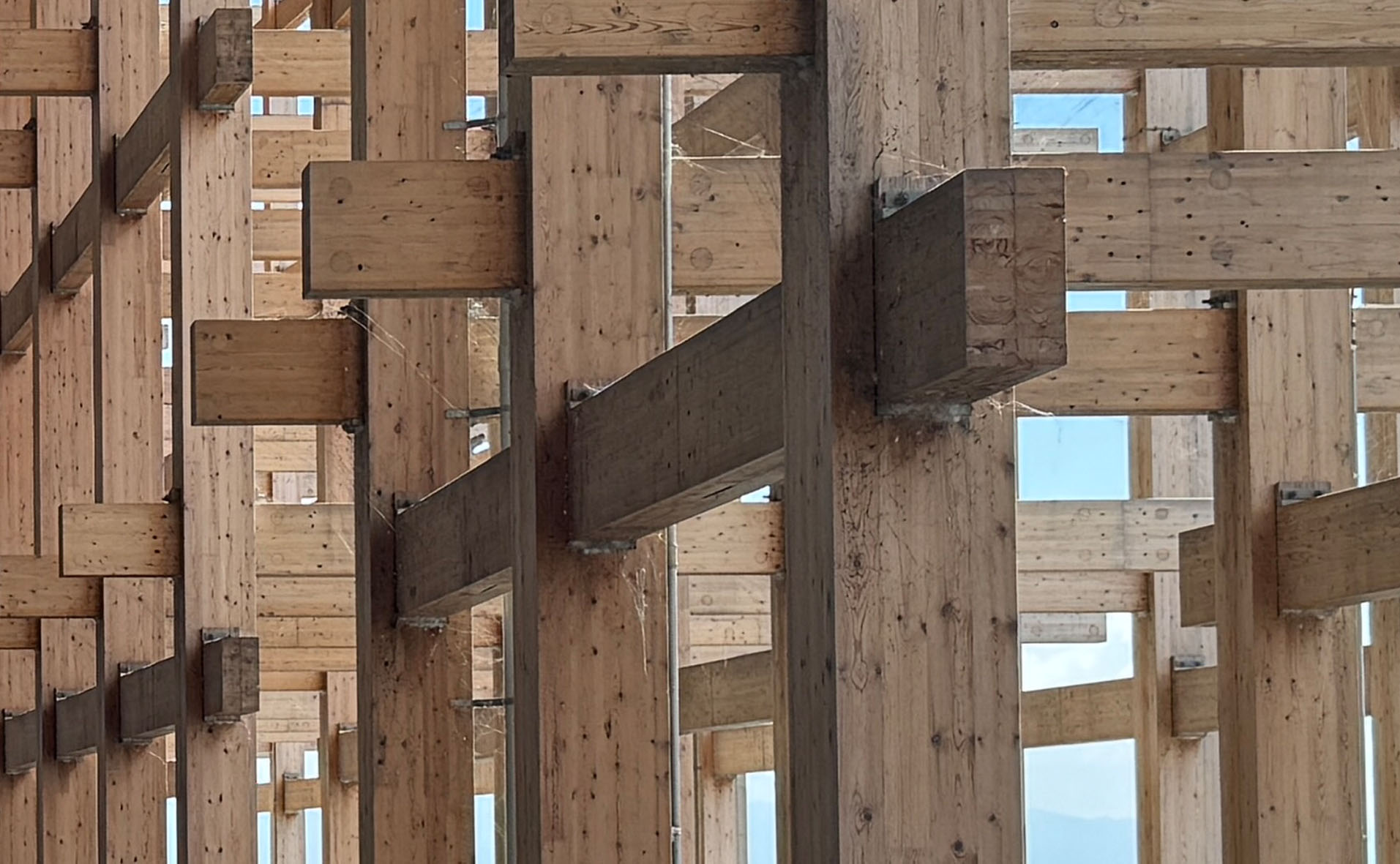 また、大屋根リングは柱・貫が連続・反復して成り立っています。